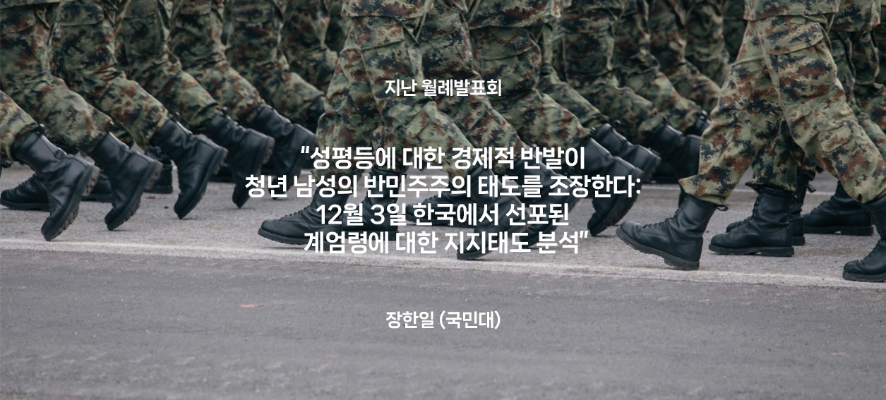 2025년 10월 월례발표회 장한일 (국민대) 이 연구는 경제적 어려움이 반민주주의적 태도에 미치는 영향력이 젠더 박탈감이라는 경로를 통해서 성별과 세대에 따라...